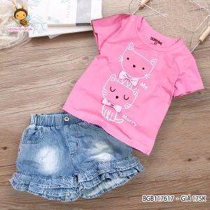 Áo thun mèo phối nơ quần jeans giả váy